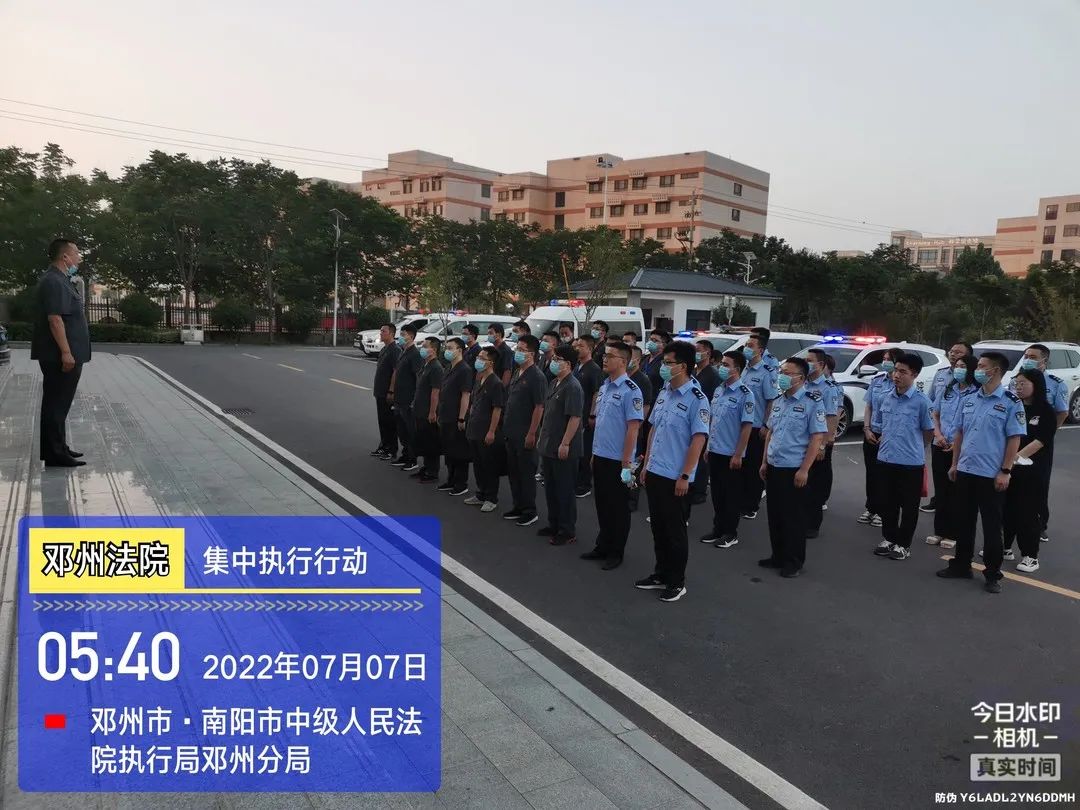 为进一步保障胜诉当事人的合法权益,扞卫司法权威,2022年7月7日,邓州365bet官网888_365bet官方下载_365赢30万不让提款执行局再次掀起“夏日执行风暴”。早晨5:40分,50余名执行干警整装待发,14辆警车警灯闪烁,随着“开始行动”一声令下,执行干警兵分五路奔赴各执行现场。