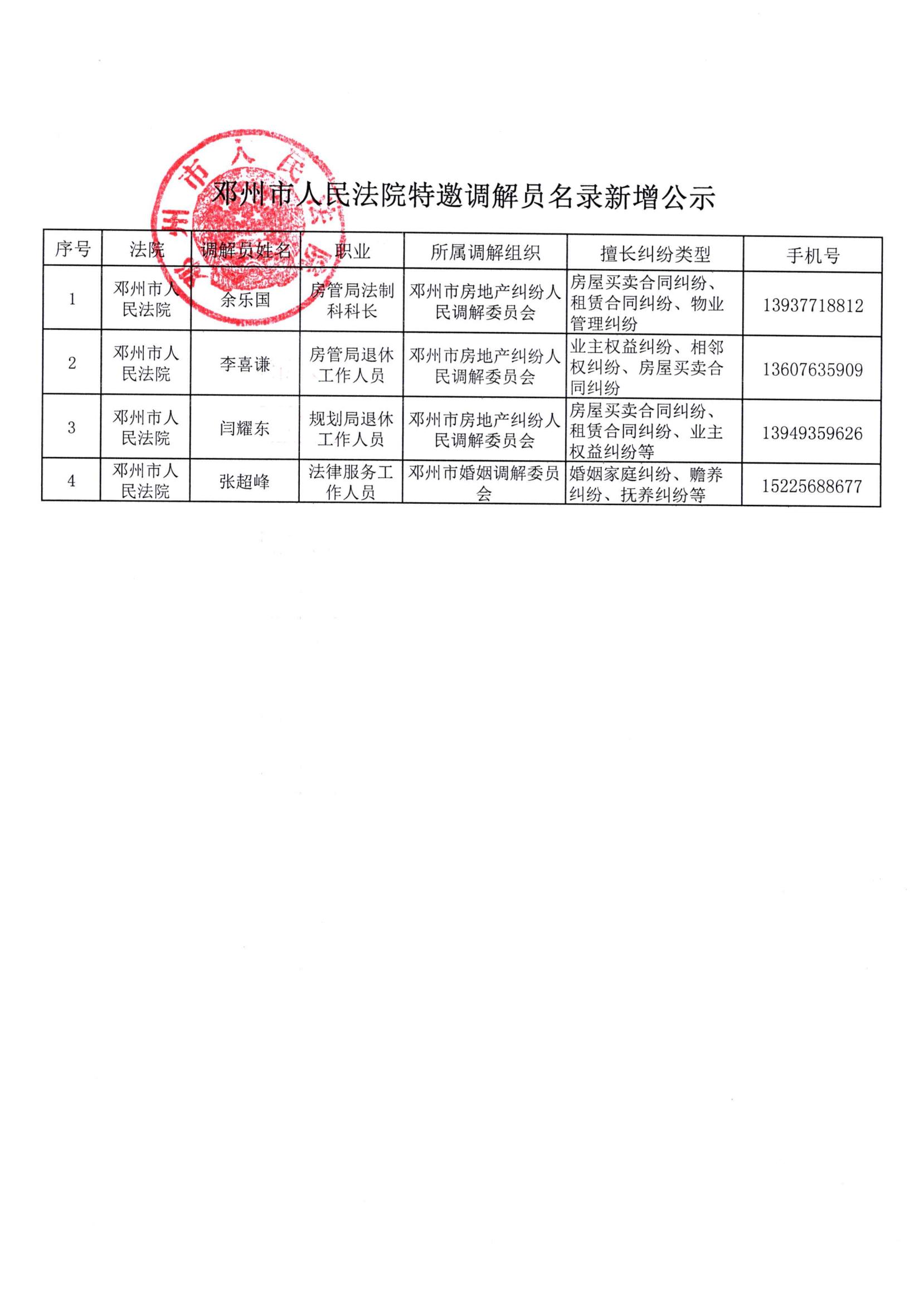 邓州市人民365bet官网888_365bet官方下载_365赢30万不让提款特邀调解员名录新增公示