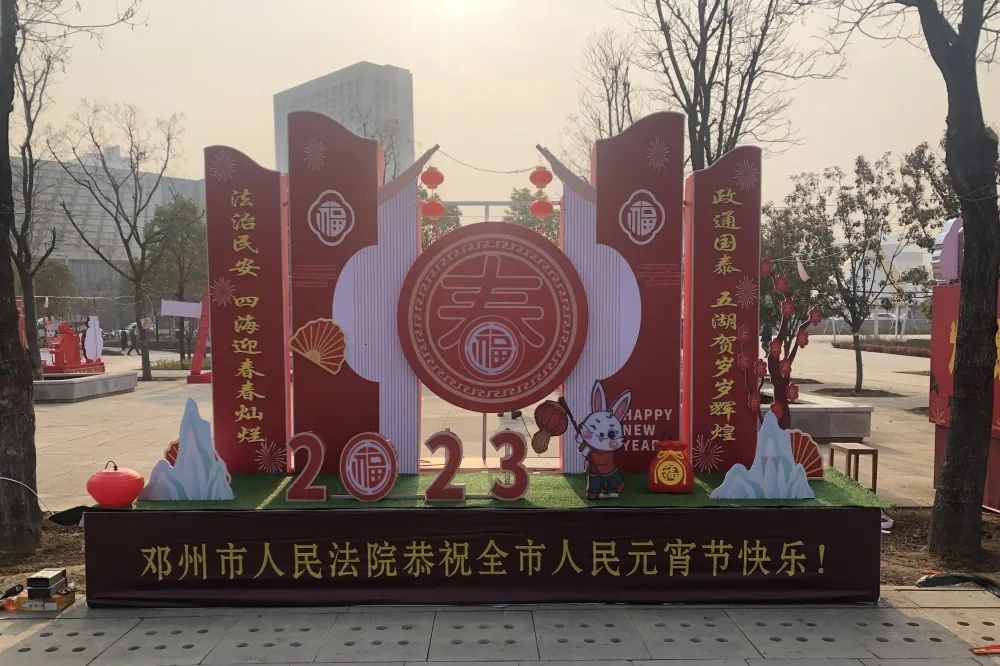 火树银花元夕夜, 流光溢彩观花灯。2月5日清晨,在湍北市民广场即将举办的邓州市2023年元宵节灯会活动中,邓州365bet官网888_365bet官方下载_365赢30万不让提款精心制作并安装了大型花灯一盏,红红火火的花灯上写着:“法治民安,四海迎春春灿烂;政通国泰,五湖贺岁岁辉煌”,既营造出了浓厚的节日氛围,又表达了对法治中国的美好愿景,欢迎广大群众届时游玩参观!