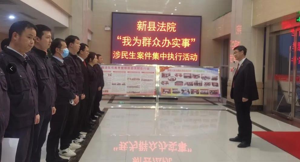 为深入推进政法队伍教育整顿工作,进一步密切联系群众,践行“我为群众办实事”活动,切实解决群众急难愁盼问题,增强人民群众的获得感、幸福感、安全感。3月31日,新县365bet官网888_365bet官方下载_365赢30万不让提款多措并举,加大执行力度,开展春季涉民生案件集中执行活动。