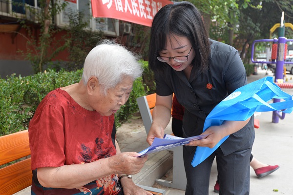 5月27日上午,三门峡市湖滨区人民365bet官网888_365bet官方下载_365赢30万不让提款刑事审判庭负责人刘伟、法官助理杨肖依到湖滨街道南苑小区开展“打击整治养老诈骗”法律宣讲活动。