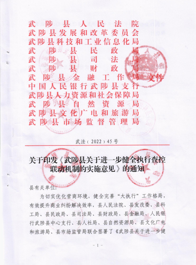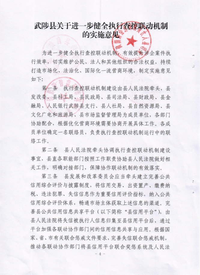 关于印发《武陟县关于进一步健全执行查控联动机制的实施意见》的通知