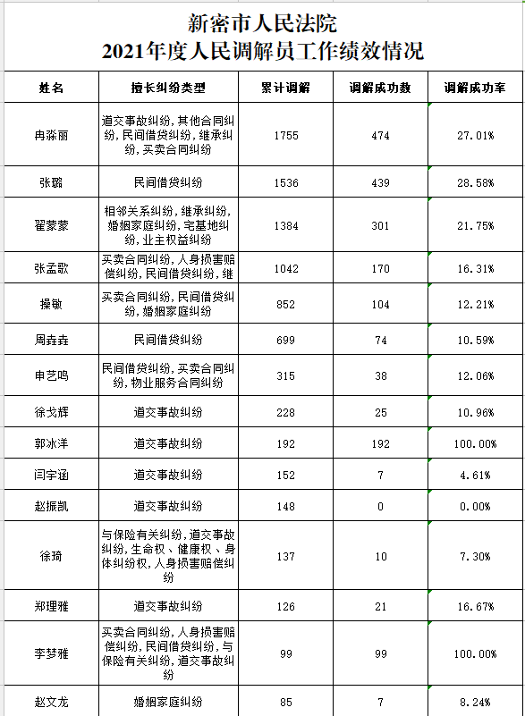 新密市人民365bet官网888_365bet官方下载_365赢30万不让提款2021年度人民调解员工作绩效情况